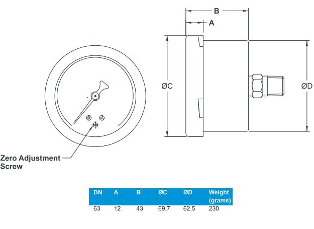 گیج فشار p60 برند ITEC رنج 0 تا 1.6 بار